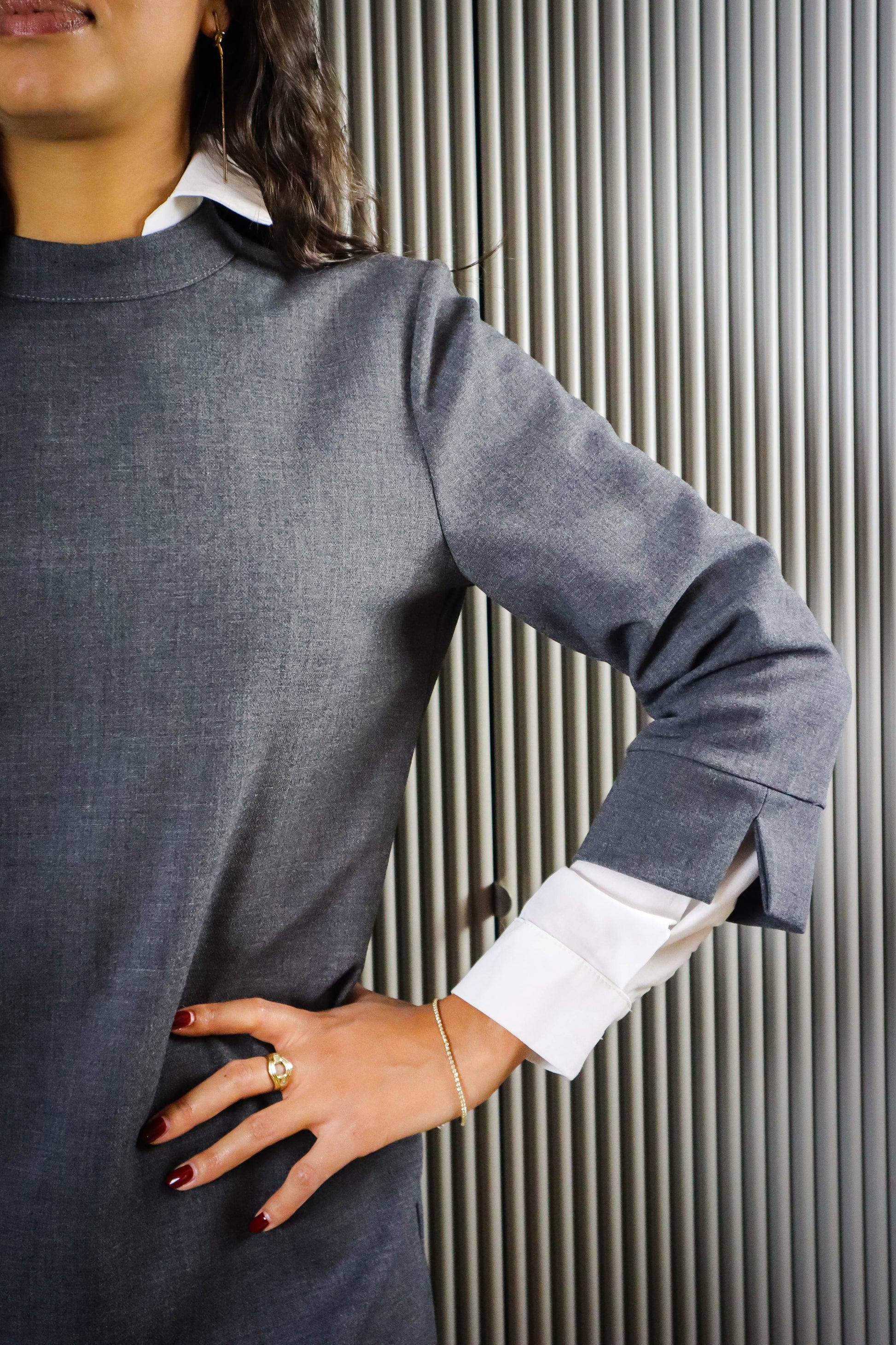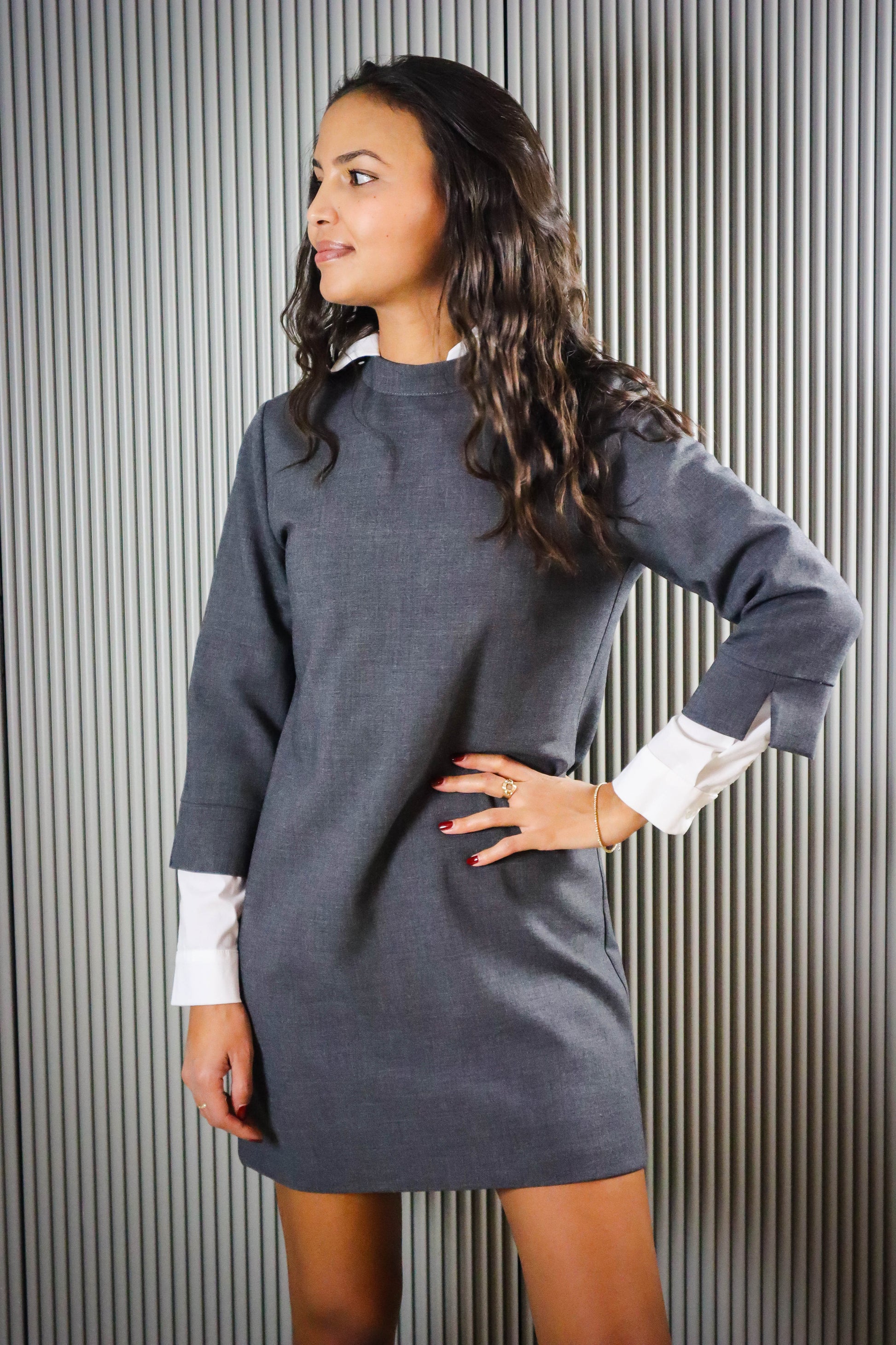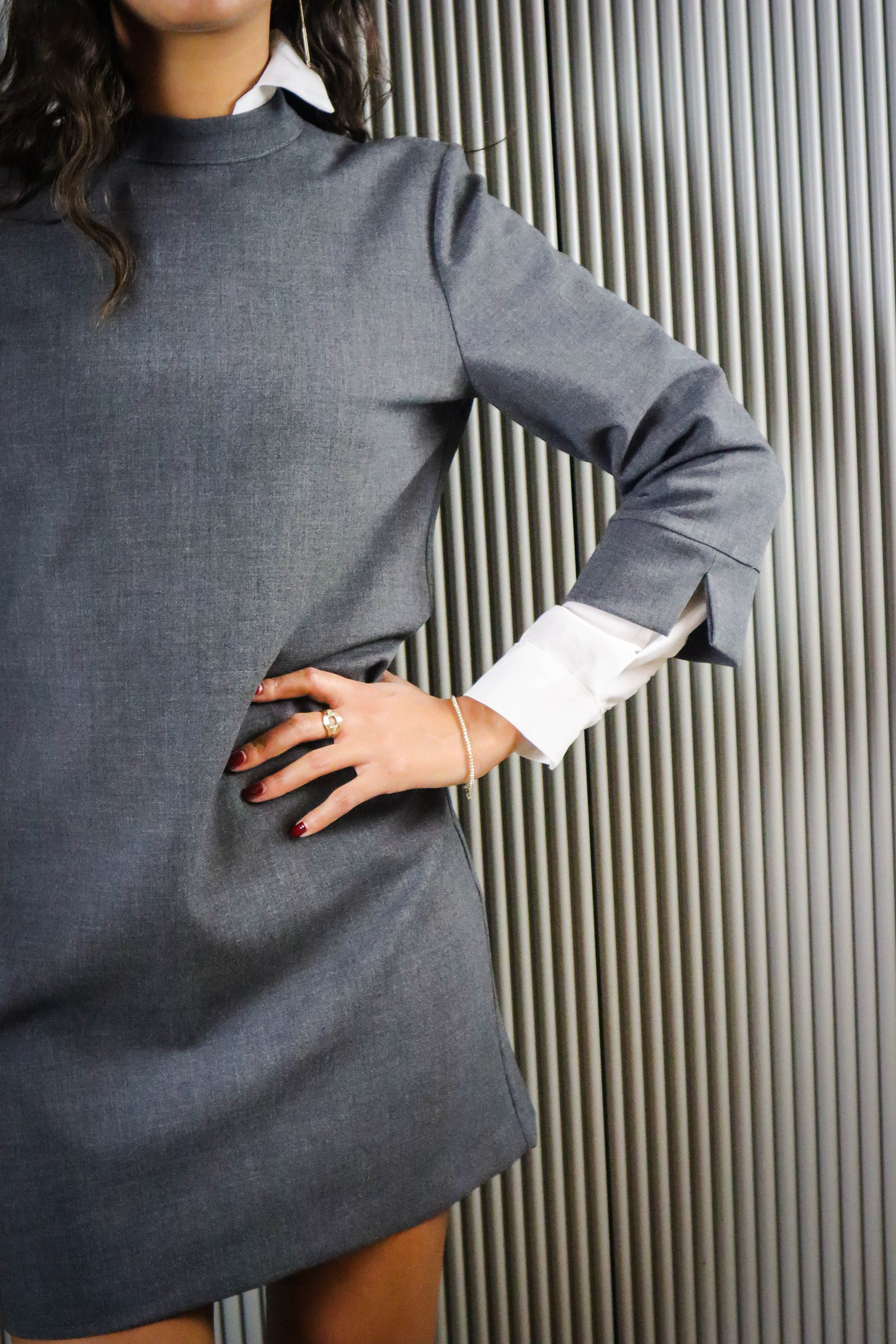 DESCRIZIONE: Abito corto manica 3/4 e colla alla coreana