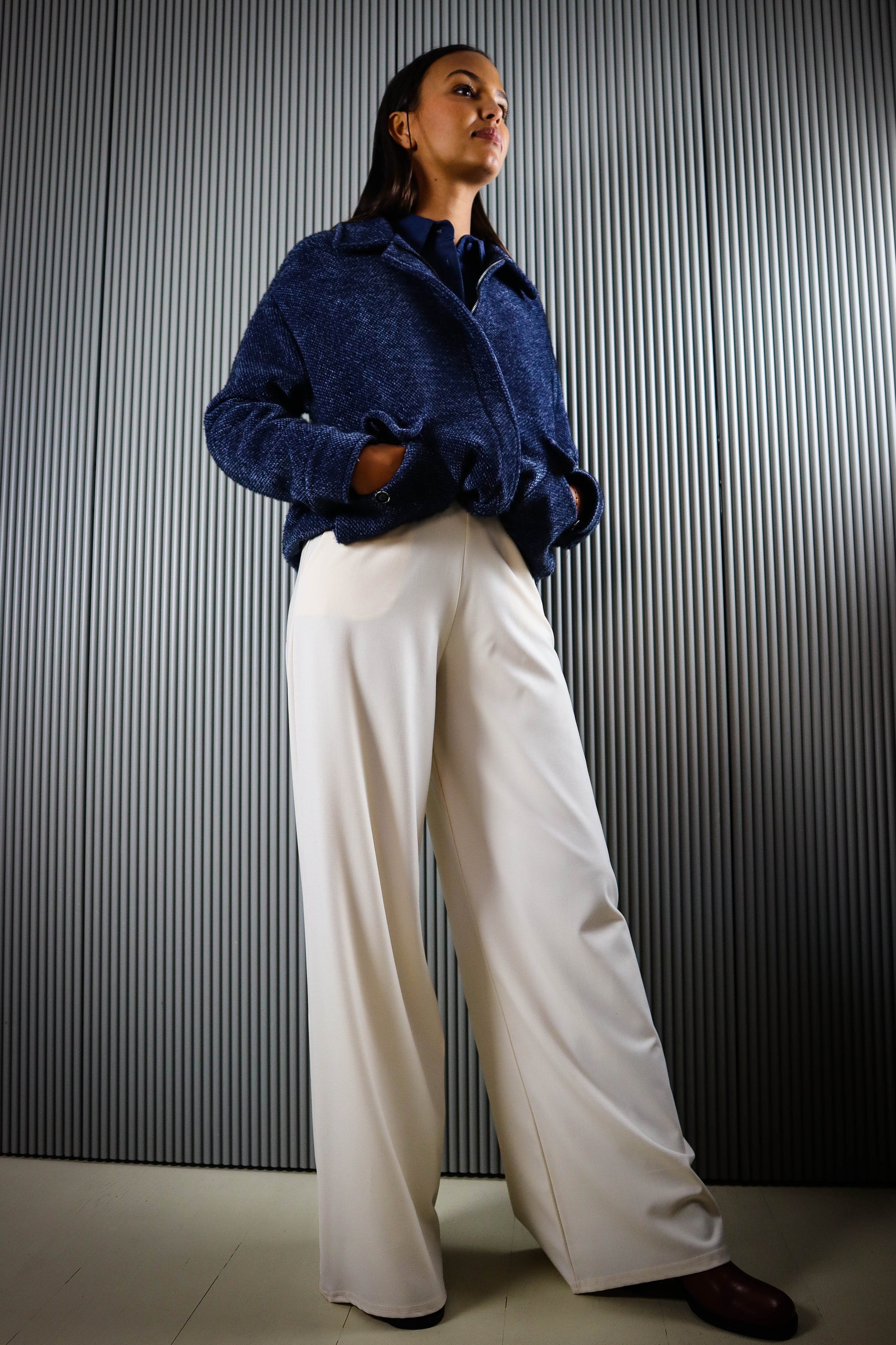 DESCRIZIONE: pantalone ampio con piences ed elastico in vita