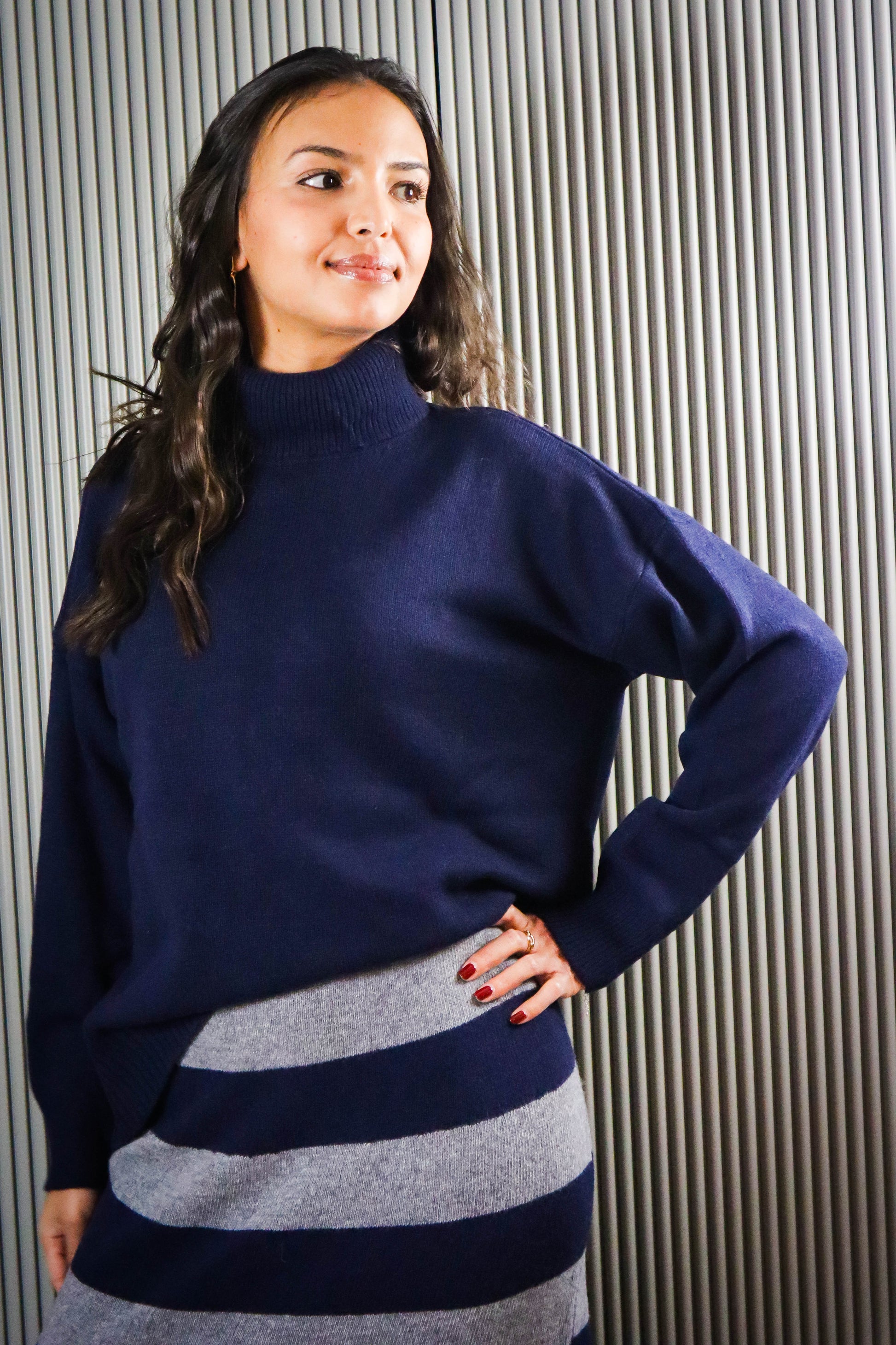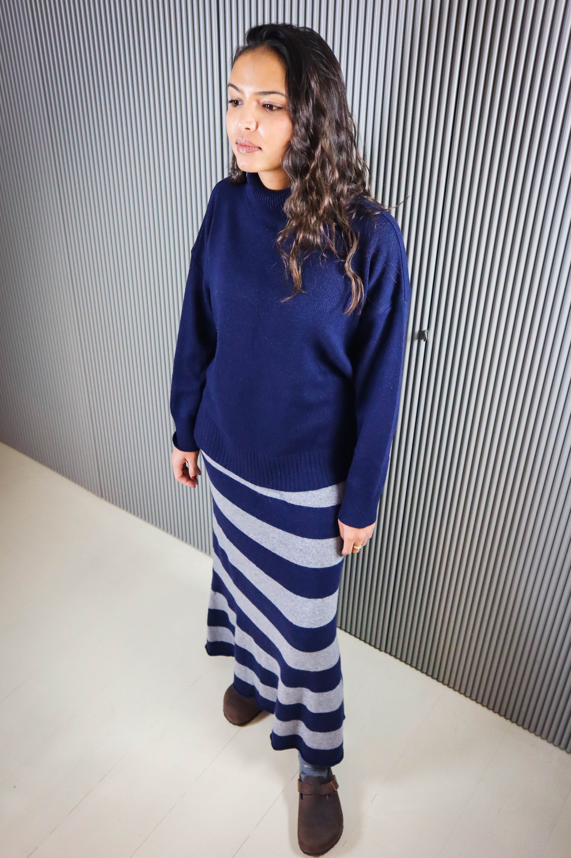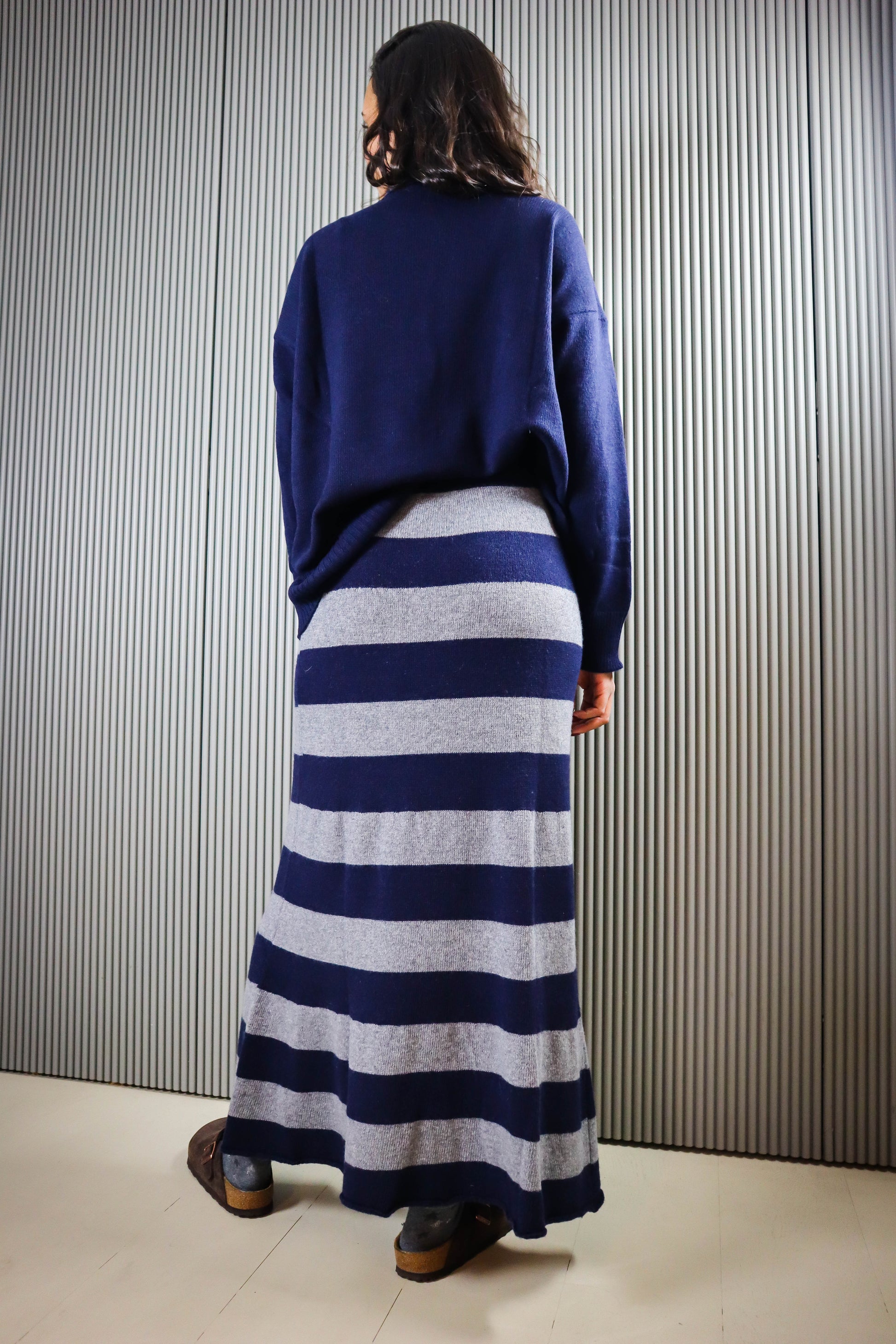 DESCRIZIONE: Completo dolcevita e gonna a righe in maglia